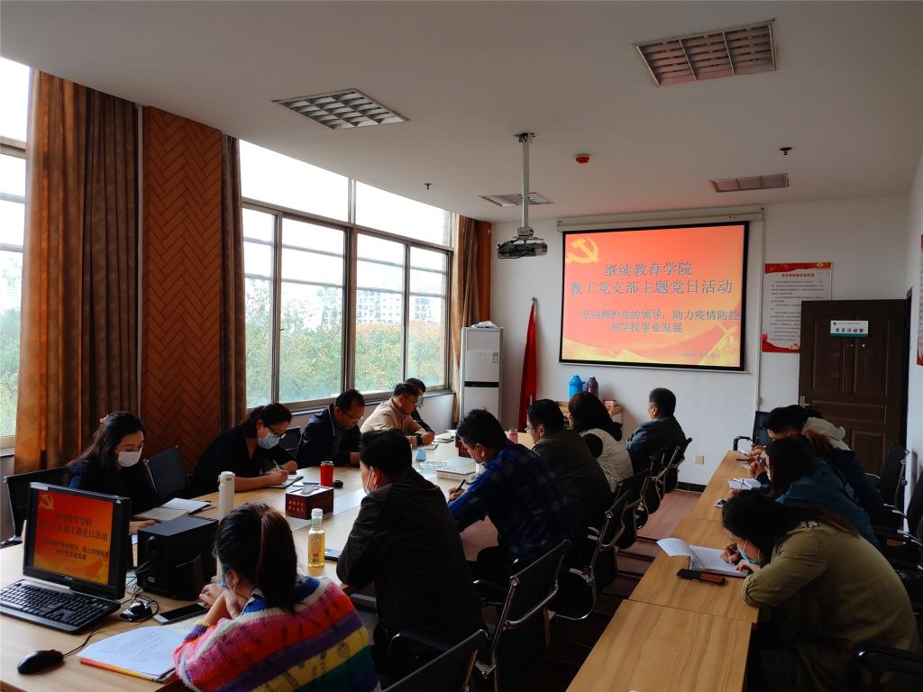 (通讯员 肖菲)2020年11月18日上午,Beats365唯一官网入口教工支部在武昌校区508党员活动室开展“坚决拥护党的领导,助力疫情防控和公司事业发展”支部主题党日活动。活动由教工党支部陈欣副书记主持。