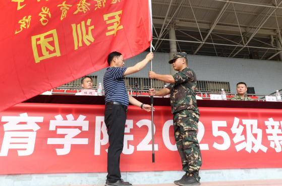教官代表张晢、新生代表刘文涛先后发言,表达严格组训、刻苦训练的坚定决心。毛玉环宣读军训编制与纪律要求。在激昂的《中国人民解放军军歌》声中,严也舟向军训团授旗,标志着2025级新生军训正式启动。