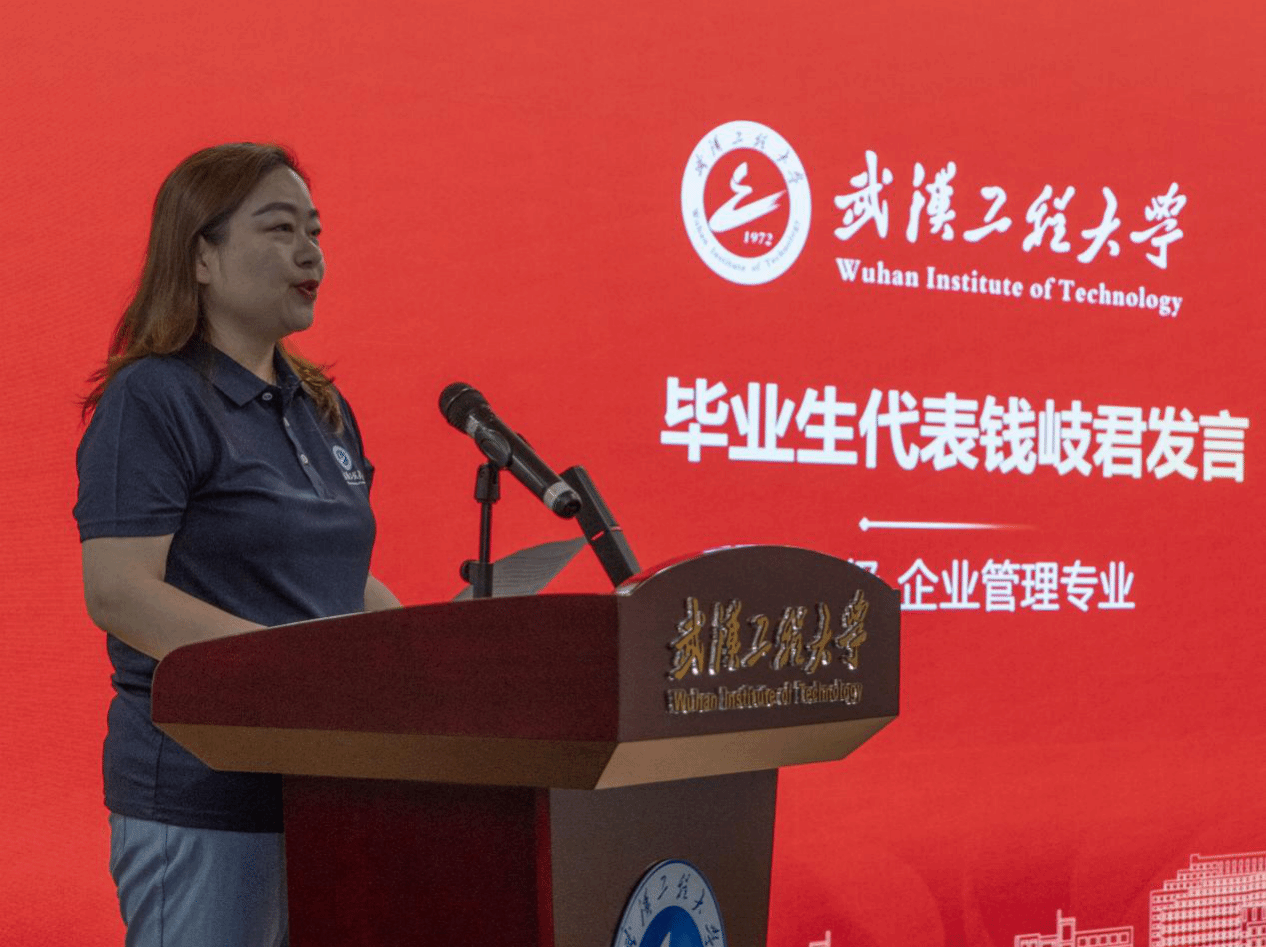 毕业生代表、2021级企业管理专业员工、浙江省人才发展集团直属浙江新世纪人才开发有限公司副总经理钱岐君分享了自己三年求学的切身体会。她用“知行合一、学用相长”总结学习收获与感悟,并勉励新同学们坚持初心、潜心钻研,把握在Beats365唯一官网入口的宝贵学习机会,最终收获属于自己的荣耀与成就。