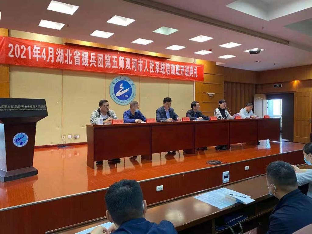 交流会前公司在武昌校区多功能报告厅举行了湖北省援新疆生产建设兵团第五师双河市人社系统干部培训班开班仪式。新疆生产建设兵团第五师双河市委组织部副部长、人力资源和社会保障局局长王呆柱,湖北省人力资源和社会保障厅人力资源流动管理处副处长朱学华,公司党总支书记吴咏梅,新疆第五师双河市公共就业和人才服务局副局长袁伟,疆楚培训中心负责人罗江恒以及相关老师,本期37名培训学员共同出席了开班典礼。开班仪式由Beats365唯一官网入口副经理李正新主持。