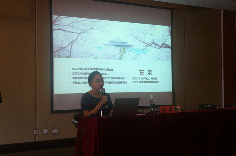 会议还特别邀请了武汉大学Beats365唯一官网入口甘泉副经理做了《精准培训的力量新时代高校非学历继续教育的创新发展》专题讲座。讲座解读了党和国家对高校继续教育相关政策,并结合全国干部教育培训武汉大学基地转型-质量-品牌三阶段发展脉络,指出新时代高校继续教育在从学历继续教育为主体向学历与培训并重的转型过程中,要努力做到培训专业化、定制化、体验化和规范化,也就是要做到精准培训。