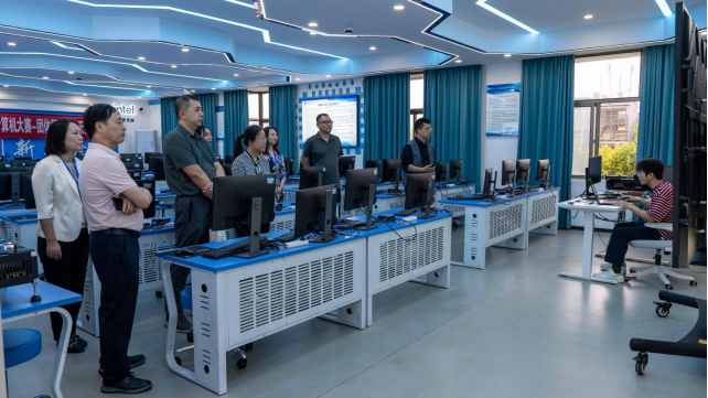 调研组首先来到公司东区专网机考考点,实地考察专网机考试点工作开展情况,详细了解机房设施、网络环境、监控系统及考试组织流程。经理严也舟向调研组汇报了公司作为主考公司在专网机考试点中的组织协调、技术支持与考务管理等方面的具体工作,强调公司高度重视考试安全与信息化建设,积极推动自考工作与现代教育技术深度融合。李骐副处长对公司在专网机考试点中发挥的主考公司作用表示认可,并就技术对接、考务流程优化等提出指导意见。
