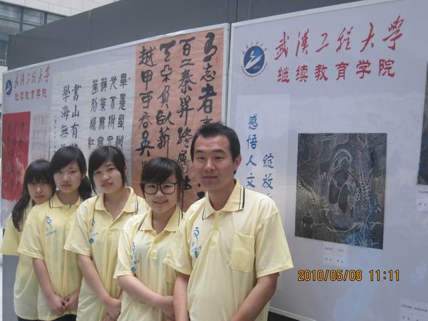 开幕式结束后陈邦军经理和同学们一起参观了自考生艺术作品展,并合影留恋。