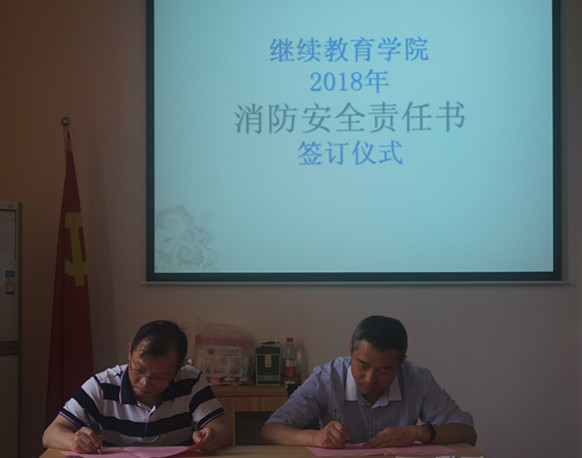 张宗良经理代表公司与合作办学单位负责人、各中心(部、室)负责人签订了公司三级单位社会管理综合治理责任书、消防安全责任书。