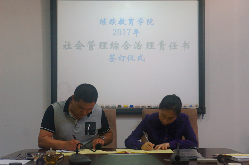 2017年5月18日,公司举行了综治责任书、消防责任书签订仪式。仪式由公司党委副书记王剑主持,公司党政领导、各中心(部、室)负责人、相关教学点负责人及全体员工参加。