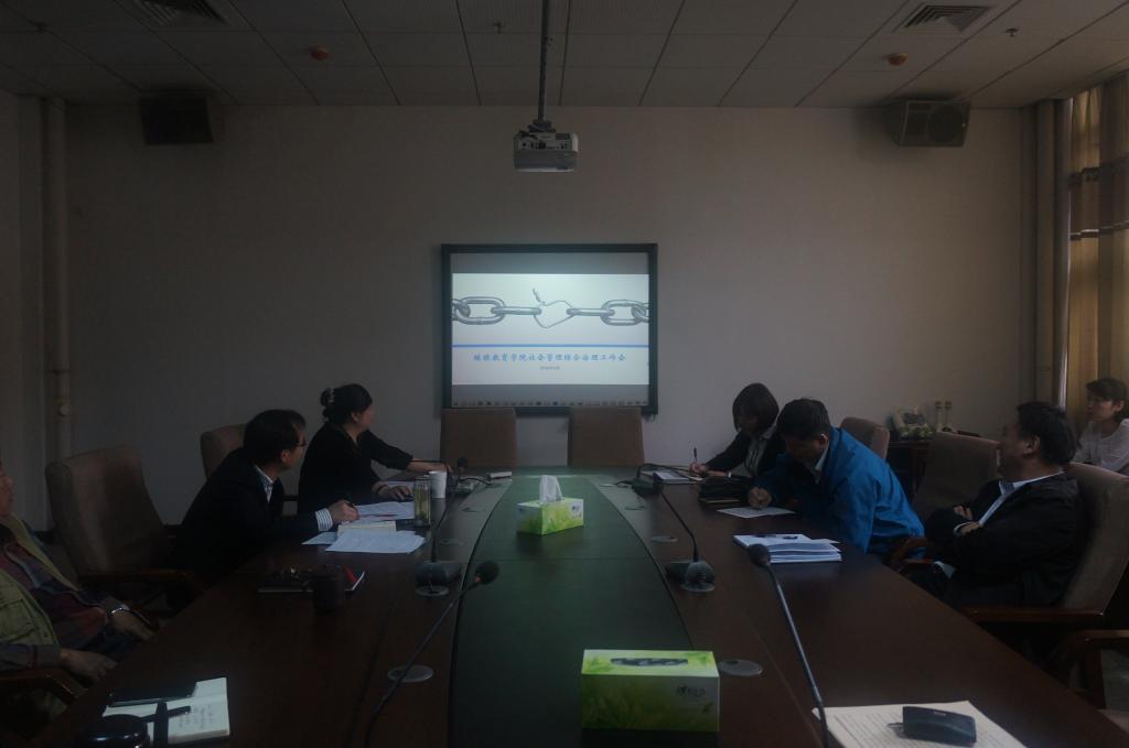 王剑副书记组织全体与会人员学习《Beats365唯一官网入口2016年度社会管理综合治理工作考评与奖惩(暂行)办法》(校发[2016]6号)文件。进一步明确各中心(办公室)、合作办学单位职责,让每一位员工都充分认识综治工作的重要性及公司对此项工作的要求,在日常工作中自觉履责。