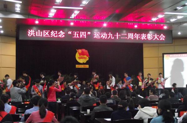 5月4日,洪山区纪念“五四”运动九十二周年表彰大会暨第五届“洪山区老员工志愿者服务明星(优秀)”和“老员工志愿服务明星(优秀个人)”表彰大会在洪山大礼堂隆重举行。