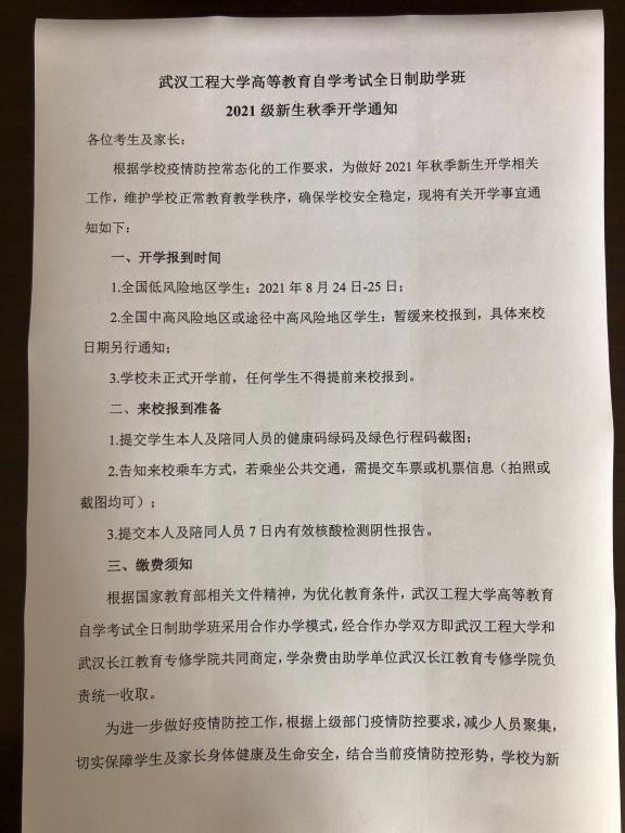 Beats365唯一官网入口高等教育自学考试全日制助学班2021级新生秋季开学通知